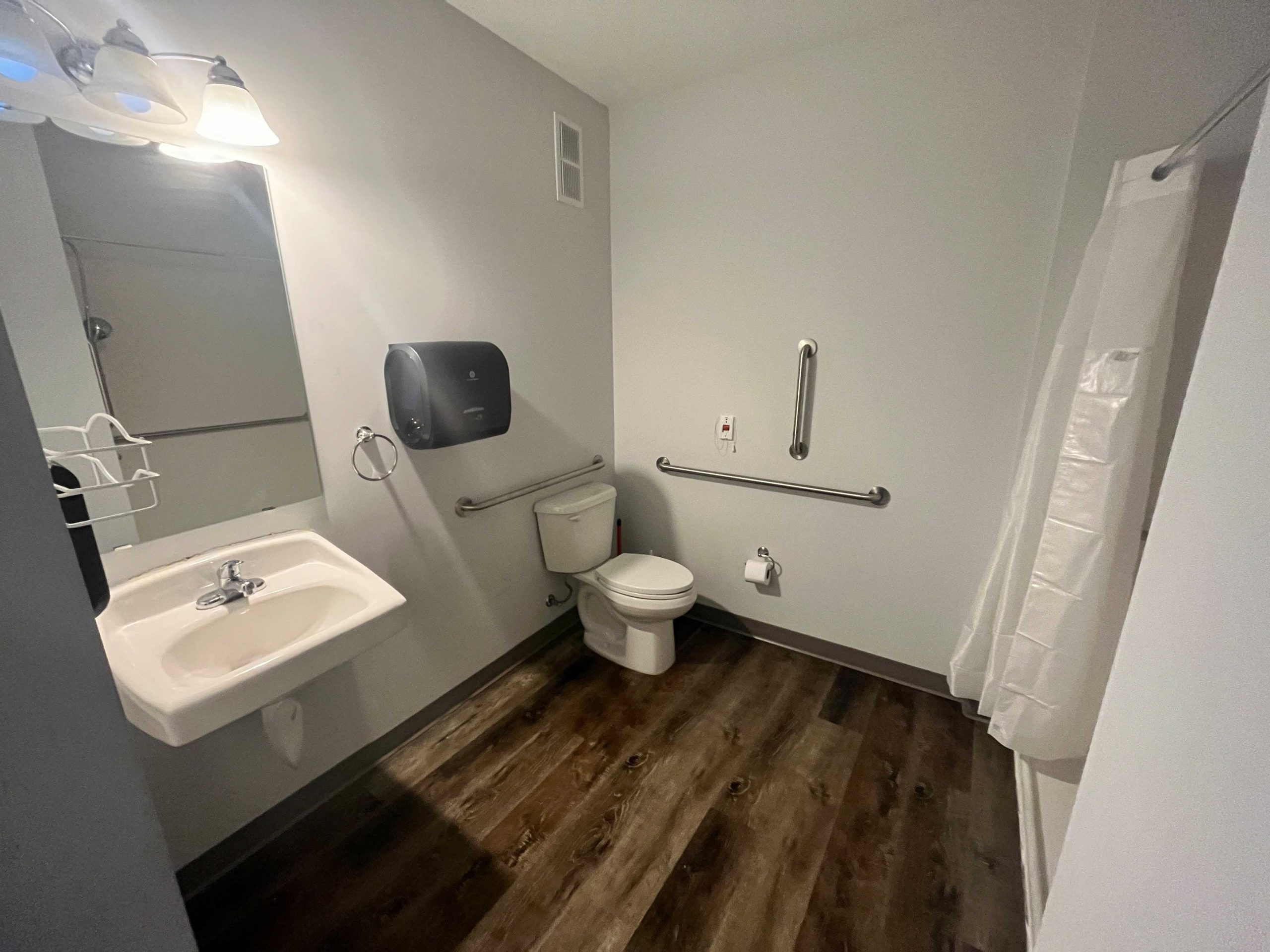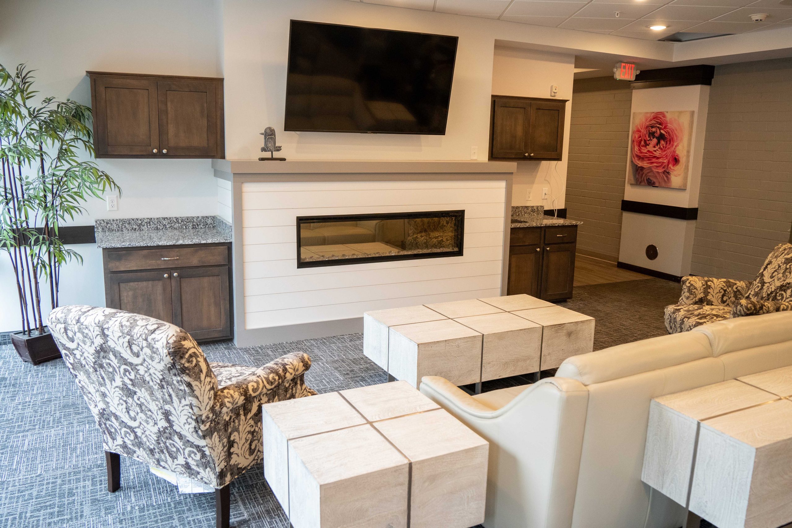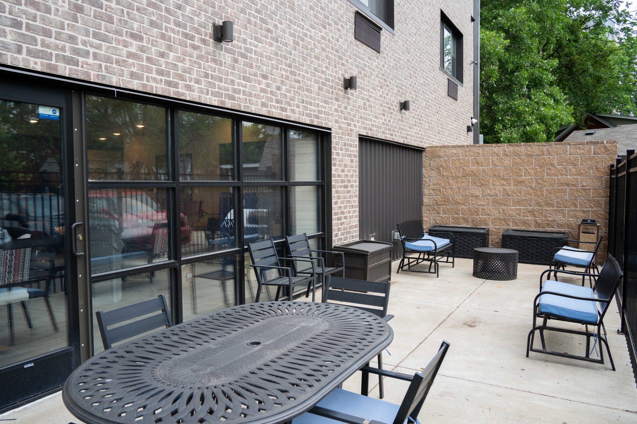 - The building features spacious common areas and an outdoor space where staff and guests can gather and build community.